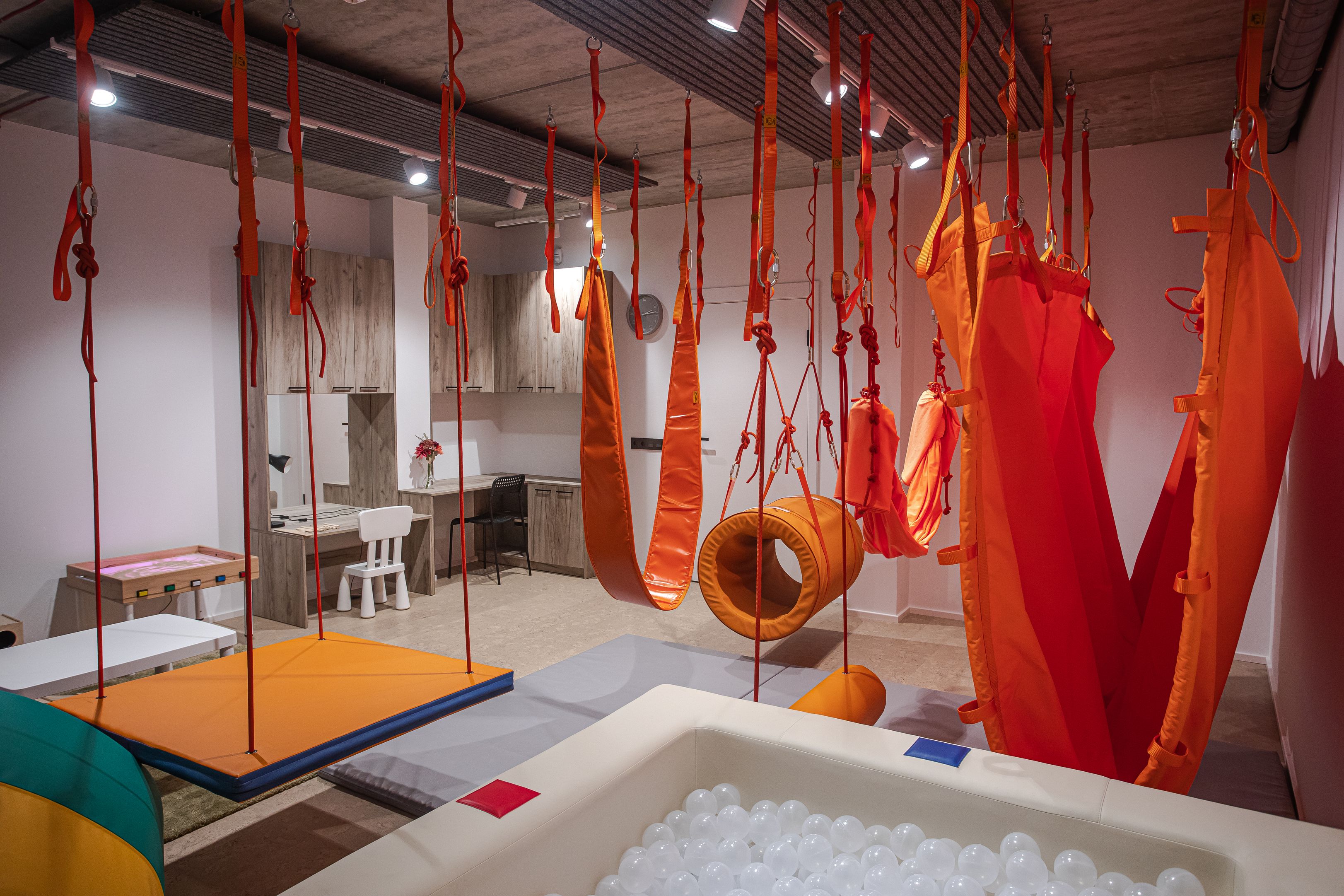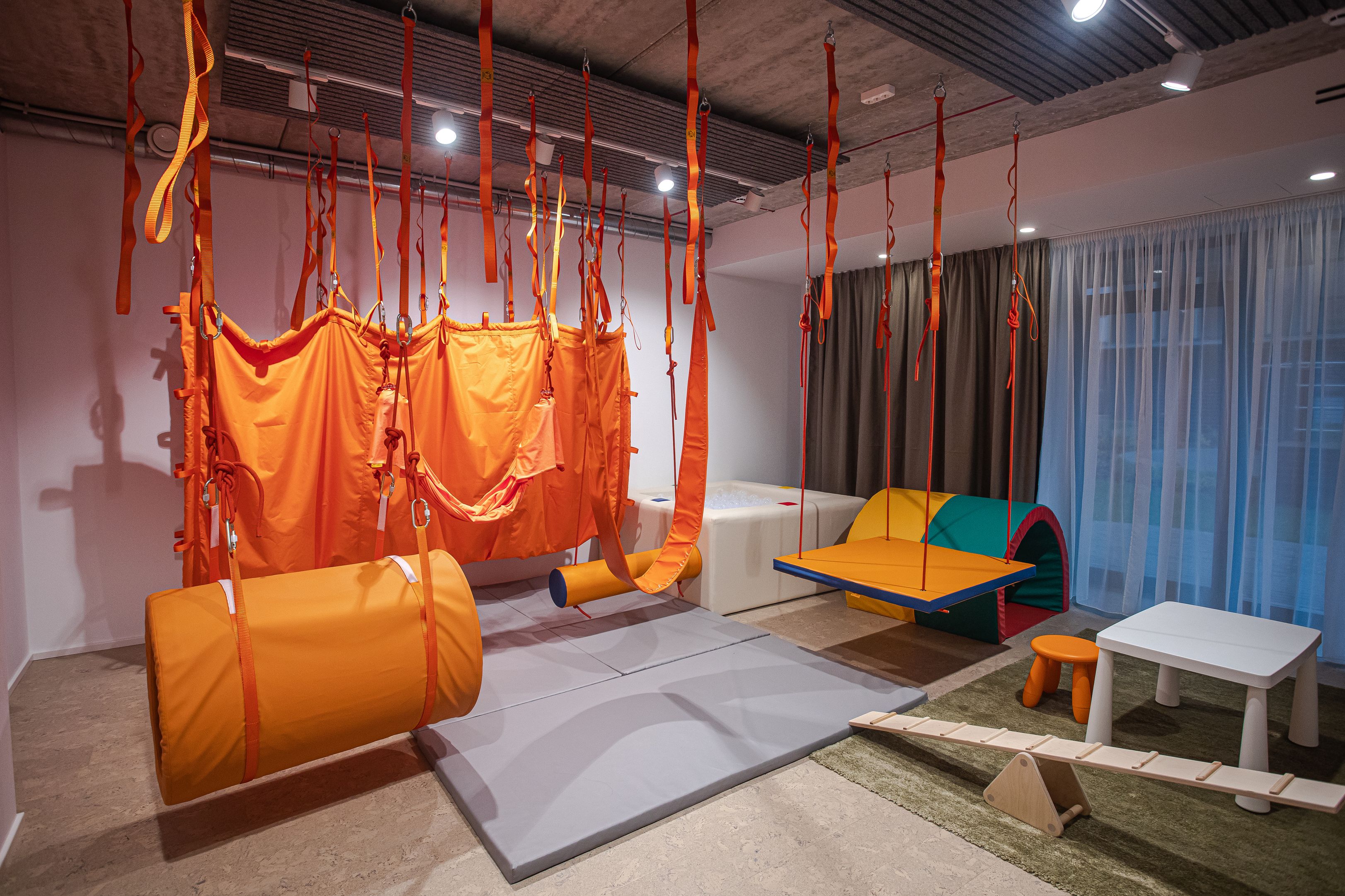 Sensorinės jautimo integracijos centre įrengtas profesionalus kompleksams „Pelėdos namai“, skirtas „specialiųjų“ poreikių ir normotipinių vaikų sensorinės-dinaminės integracijos principais dirbančių specialistų erdvei organizuoti. Kruopščiai atrinktų treniruoklių dėka, šis centras yra efektyvus pagalbininkas, sprendžiant reabilitacijos, habilitacijos ir korekcines užduotis.