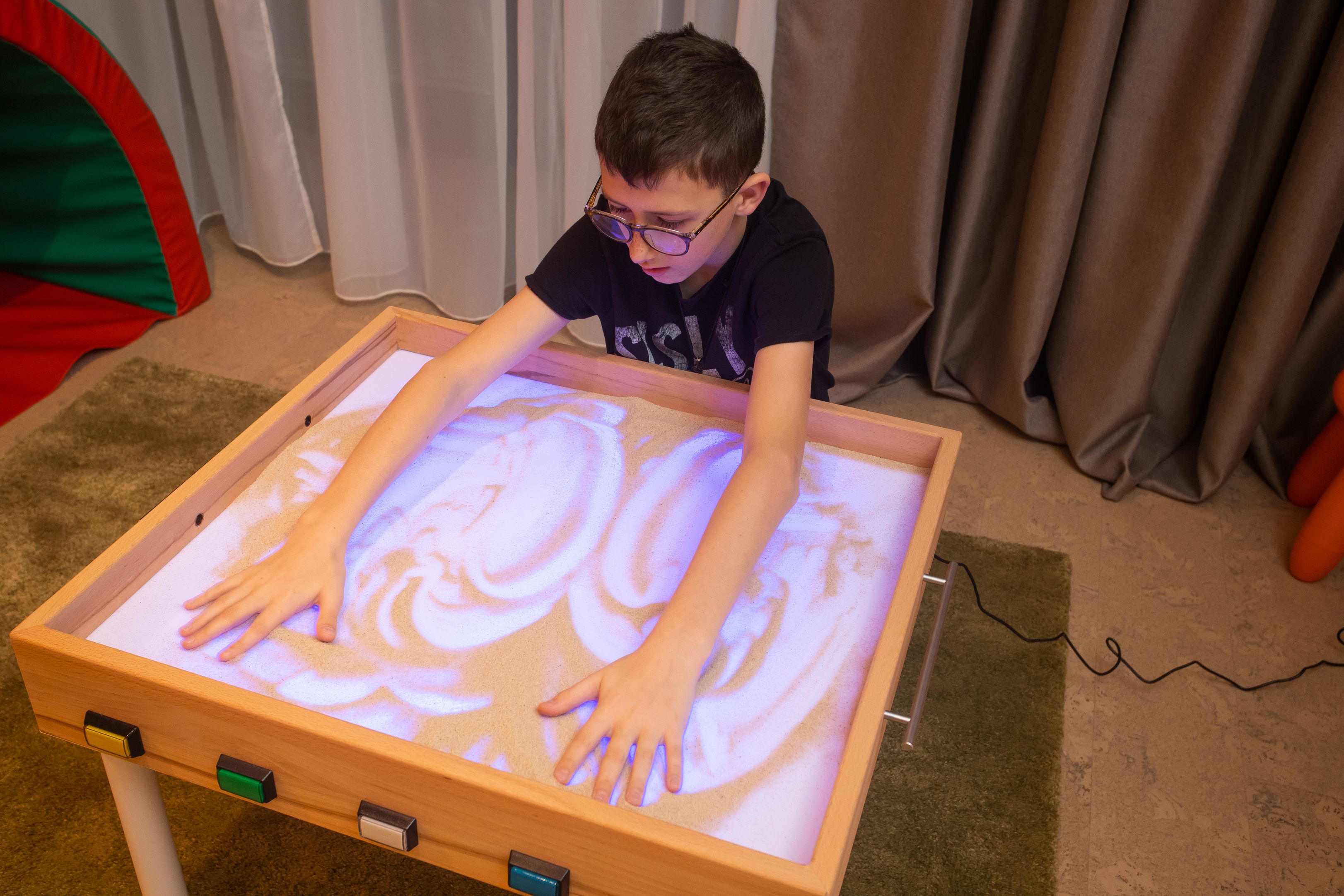 - Lygus žaidimo komplekso paviršius - leidžia lavinti lytėjimo pojūčius, atstato jutimo trūkumą riboto judrumo vaikams.
